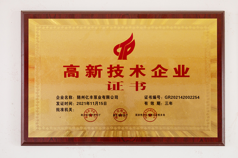 隨州億豐泵業(yè)有限公司位于隨州市曾都經(jīng)濟開發(fā)區(qū),建筑面積15000平方米,公司現(xiàn)有大學(xué)文憑以上的35人、技術(shù)人員25人(高級職稱5人、中級職稱以上27人)。公司自成立以來先后獲得高新技術(shù)企業(yè)、“專精特新”小巨人企業(yè)、隱形冠軍、著名商標(biāo)等一系列榮譽。